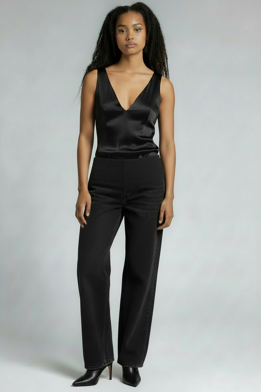 CHRISTOPHER ESBER. Denim Jeans. Size:6. Black, High-Rise, Wide leg fit.