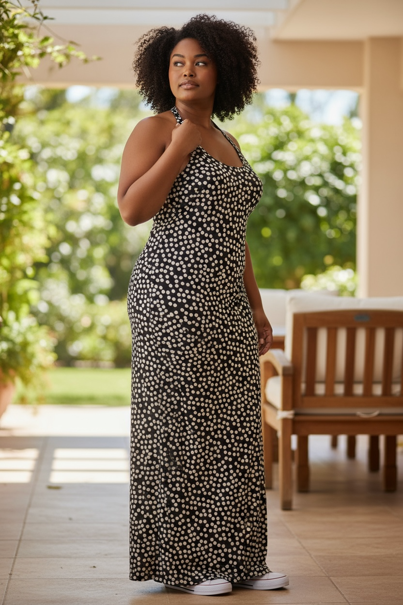 We were so happy to find this beauty! It is just so flattering and versatile and breathable and on trend and just really all of the things *. It is sleeveless with its scoop neck and contours along the body, that sits comfortably and even though it is a slip dress, tailoring has been added in the chest for us bustier babes!. It is effortless but stands out, it is confident but not overpowering. Super love!